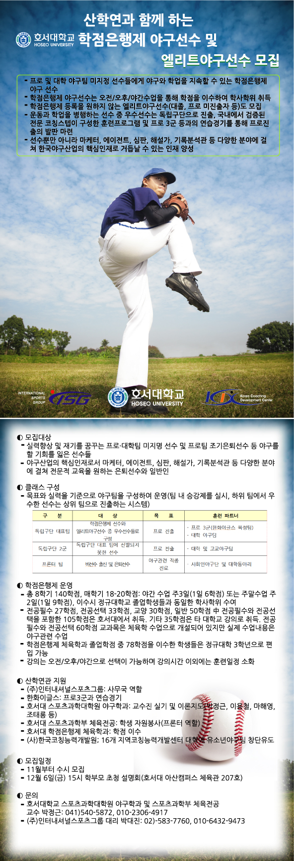 산학연관과 함께하는 호서대학교 학점은행제 야구선수 및 엘리트선수 모집